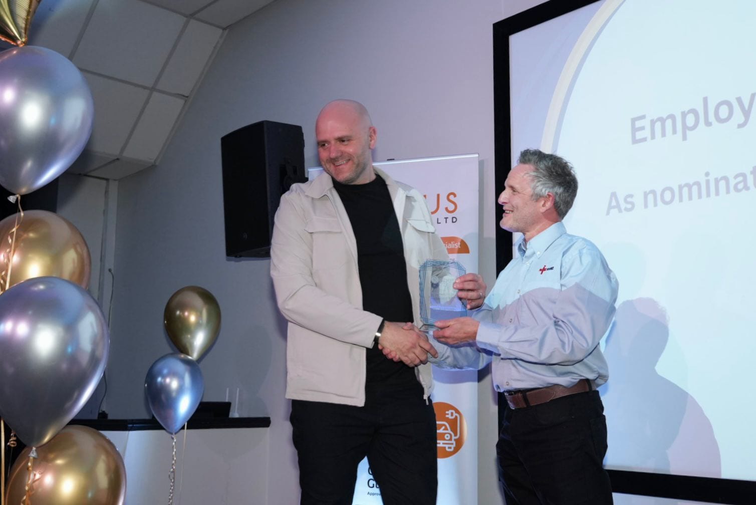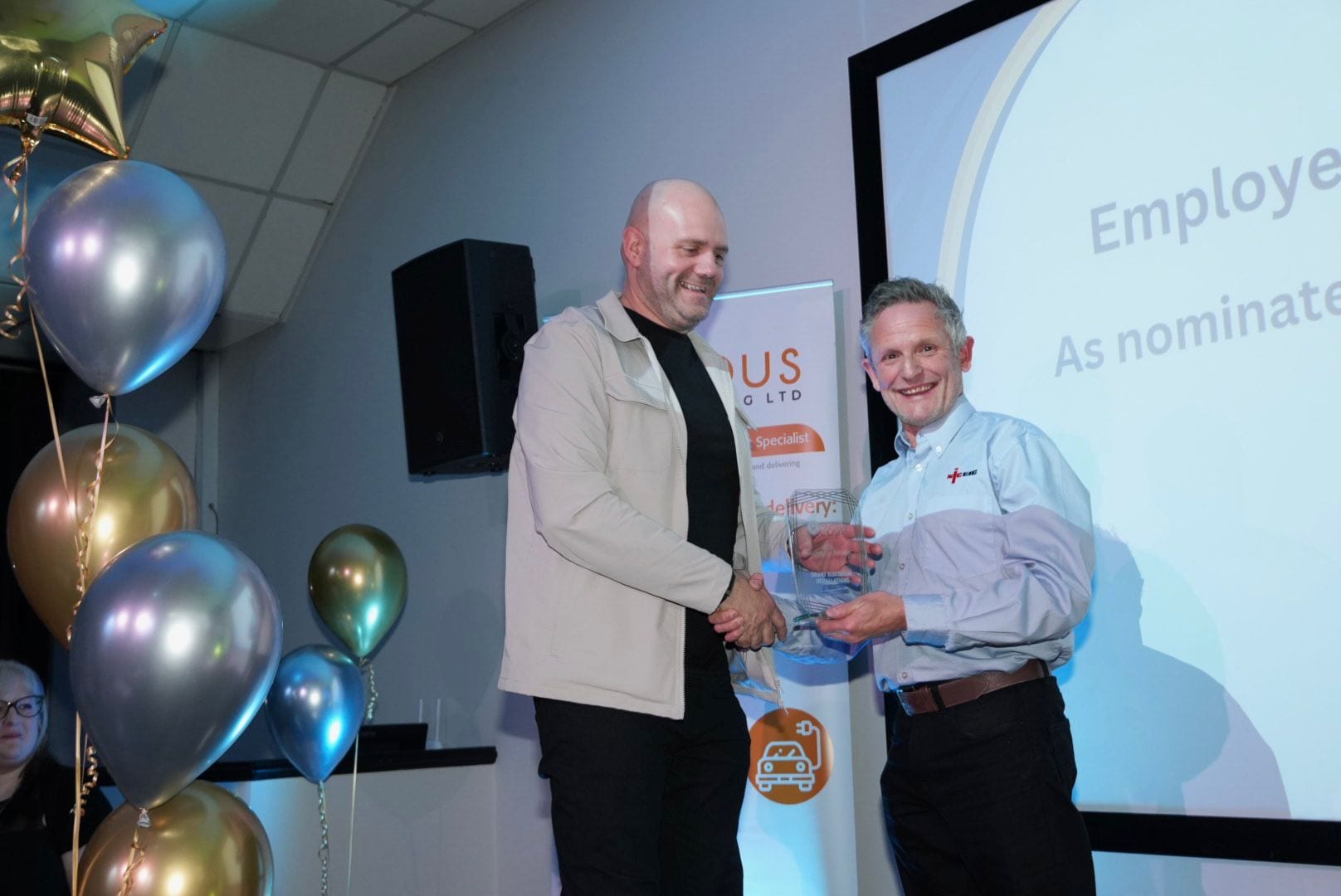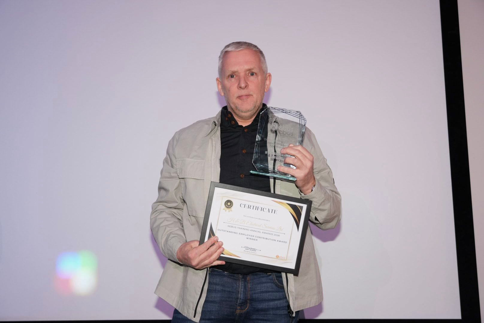 Ian Brookes accepting his Tutor of the Year award from Jon Grocock (Managing Director)