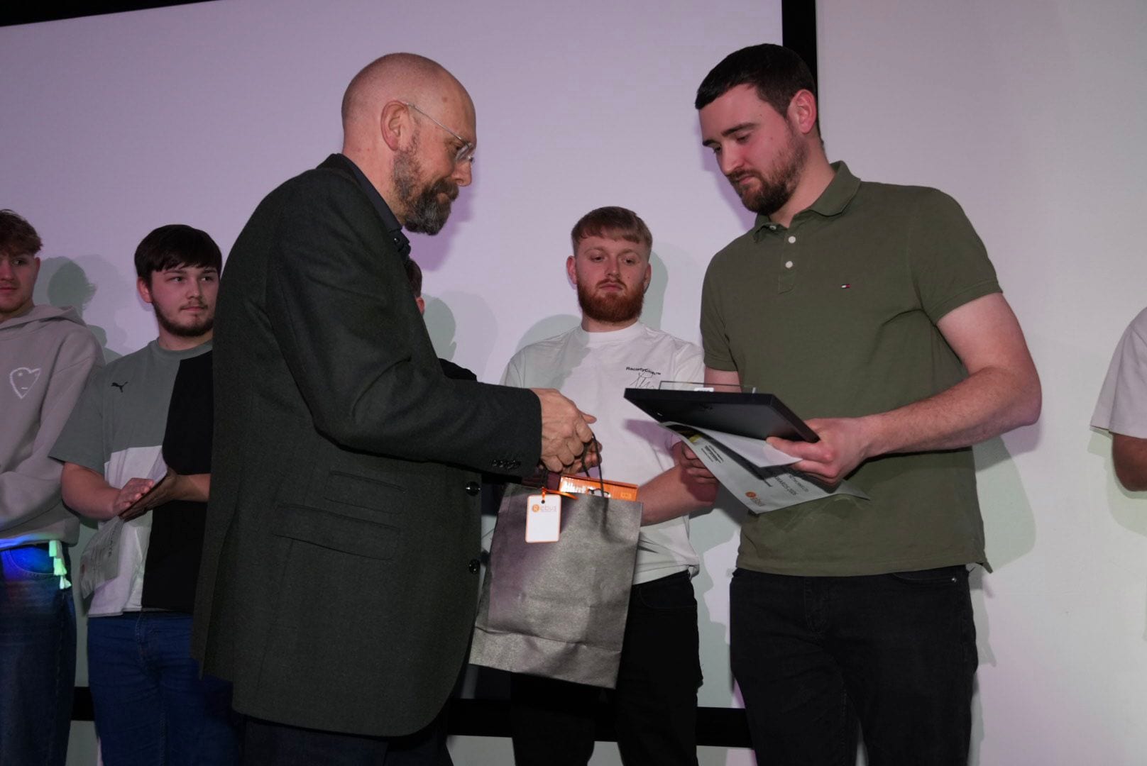 Kyle Standeven presented with his award by Tutor Shaun Eardley