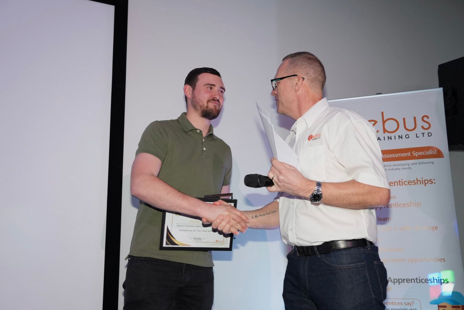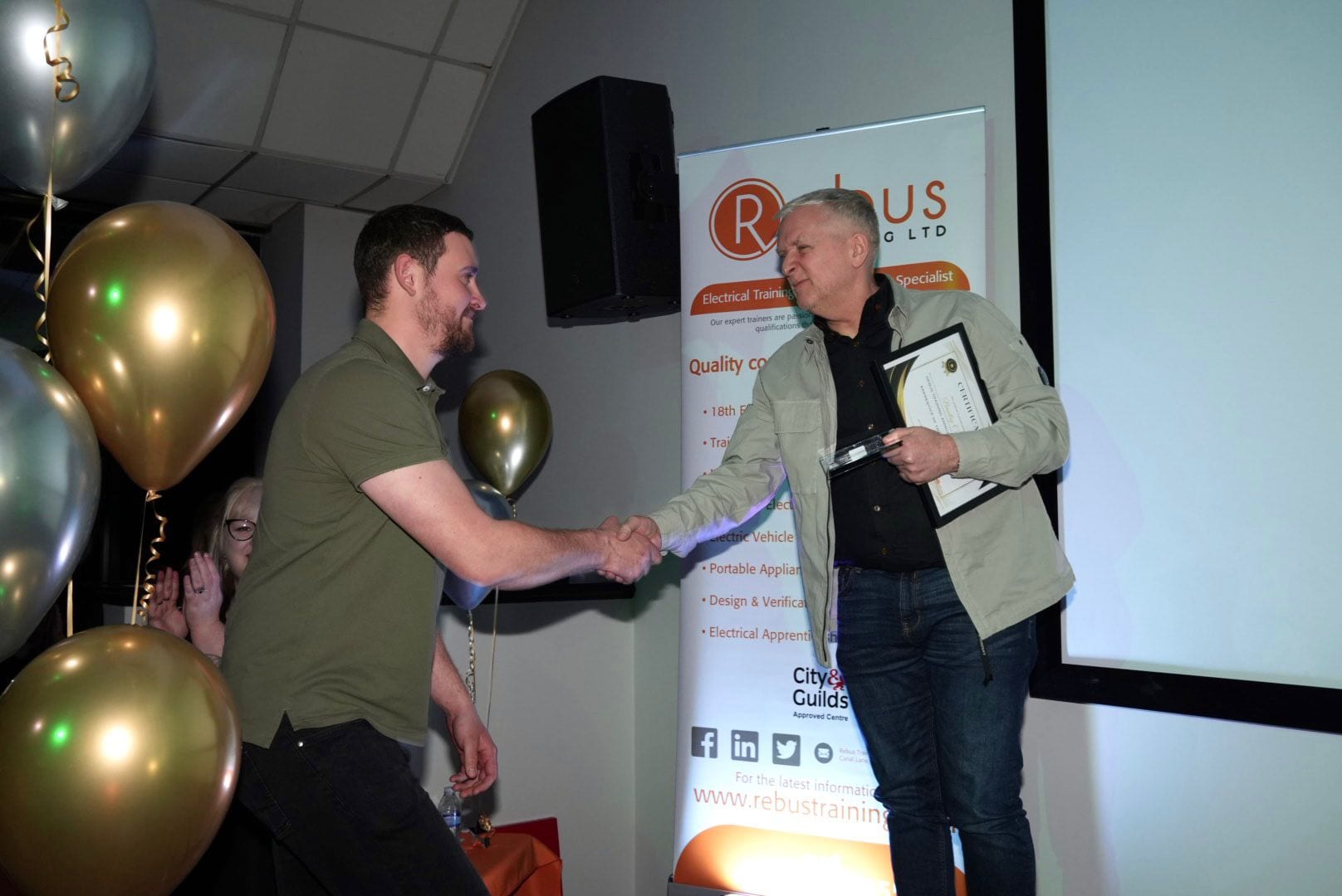Nigel Cartwright – Winner in Year 2 Best in the Year category. Presented by Rob Glover (Training Manager)